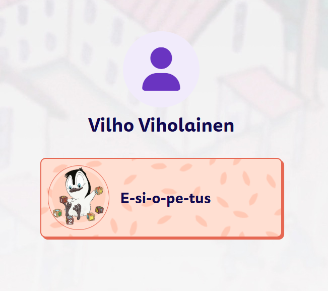 4. Jatkossa lapsi näkyy aloitusnäkymässä automaattisesti, kun käyttäjä kirjautuu sisälle. Lapsen nimeä klikkaamalla pääsee siirtymään kyseisen lapsen profiiliin ja tarkastelemaan tämän suorituksia. Tässä esimerkissä huollettava on eskarilainen, jotennäkymässä on esiopetuksen kortti. Jos huollettava on koululainen, näkymässä voi olla useamman oppiaineen kortteja.